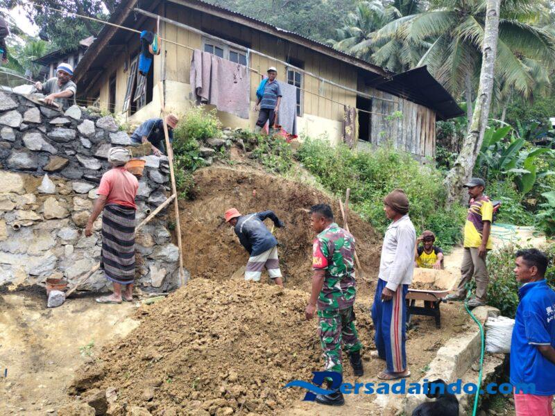 Dalam kesempatan tersebut, Babinsa Serka Yupiter Kase bersama warga binaan melaksanakan karya bhakti terbatas dengan membantu pembangunan tembok TPT sebagai bagian dari upaya peningkatan fasilitas lingkungan. Selain itu, kegiatan juga diisi dengan anjangsana dan komunikasi sosial untuk menjaga sinergi dan keamanan wilayah.