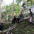 Belu – Personel Pos Turiscain, Pos Delomil, dan Pos Kewar melaksanakan karya bakti pembersihan Rumah Adat Dirun, di Dusun Nuawain, Desa Di...