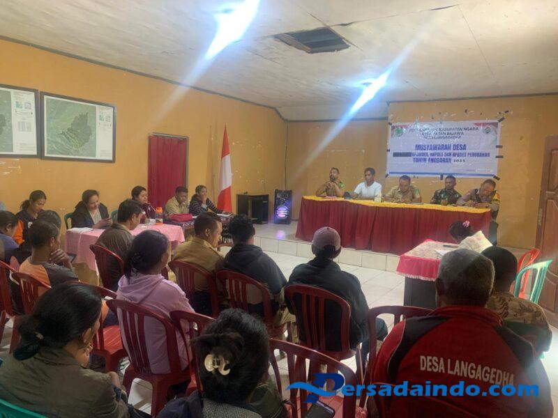 Ngada – Babinsa Koramil 1625-01/Bajawa, Pratu Ferdinando Saldianus Djone pada hari Selasa, 23 September 2025 mulai pukul 09.00 WITA hingga selesai menghadiri undangan Musyawarah Perubahan Anggaran Pendapatan dan Belanja Desa (APBDes) Tahun Anggaran 2025 sekaligus Musyawarah Perencanaan Pembangunan Desa (Musrenbangdes) Tahun Anggaran 2026, bertempat di Aula Kantor Desa Langagedha, Kecamatan Bajawa, Kabupaten Ngada.