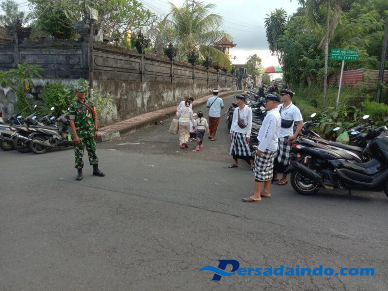 Klungkung, – Selalu hadir dan berkontribusi dalam berbagai kegiatan di wilayah binaan, Babinsa Semarapura Kangin dan Babinsa Negari melaksanakan pengawalan dan pengamanan upacara keagamaan di wilayah binaan masing-masing, Selasa ( 22/07/25 ).