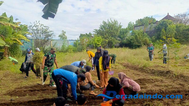 Danramil 1610/Klungkung Lettu Cpl Putu Agus menyampaikan bahwa sore ini kita turung langsung untuk bersama-sama seluruh komponen di Desa Kampung Gelgel menggelar gotong royong penyiapan lahan Hanpangan.