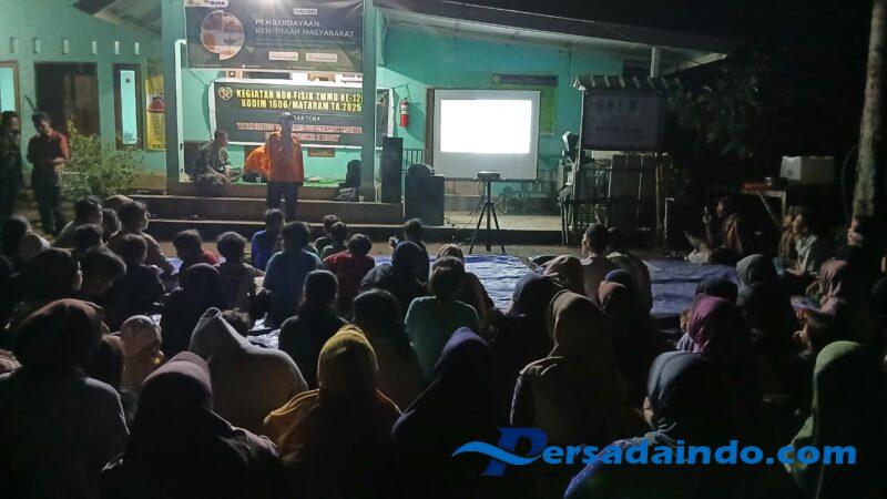 Lombok Barat, NTB – Satuan Tugas (Satgas) TNI Manunggal Membangun Desa (TMMD) Ke-126 Komando Distrik Militer (Kodim) 1606/Mataram bersama Dinas Kesehatan (Dinkes) dan Badan Penanggulangan Bencana Daerah (BPBD) Kabupaten Lombok Barat (Lobar) menggelar sosialisasi kesehatan lingkungan dan penanggulangan bencana alam di Rumah Produksi Gula Aren, Dusun Tempos Madani, Desa Giri Madia, Kecamatan Lingsar, Lobar, Sabtu malam (25/10/2025).