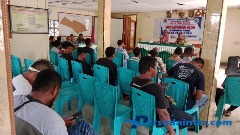Kegiatan tersebut diikuti oleh berbagai unsur masyarakat dan pemerintah desa. Hadir dalam musyawarah ini antara lain Kepala Desa Tana Duen beserta staf, Ketua dan anggota BPD, anggota Lembaga Adat, Bhabinkamtibmas, tokoh masyarakat, tokoh agama, karang taruna, pendamping desa kecamatan dan lokal desa, para kepala dusun, RT/RW, serta unsur Linmas.