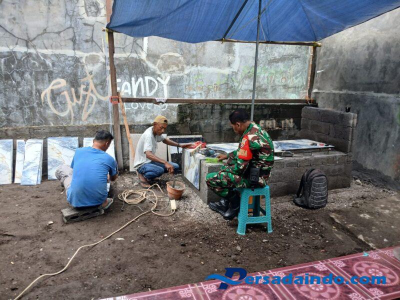 Ende, — Babinsa Koramil 1602-02/Wolowaru, Sertu Hilarius Lela, melaksanakan kegiatan karya bakti bersama masyarakat Desa Tenda, Kecamatan Wolojita, Kabupaten Ende. Kegiatan tersebut dilakukan pada pukul 08.00 Wita dengan membantu pemasangan keramik pada kubur Almarhumah Ibu Teresia Asi.20 Agustus 2025.