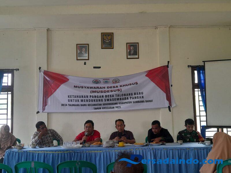 Sumbawa Barat – NTB, Babinsa Desa Talonang Baru, Serda Aden Syahbudin, kembali menunjukkan dedikasi teritorialnya dengan mendampingi pelaksanaan Musyawarah Desa Khusus (MUSDESUS) Ketahanan Pangan yang digelar di Aula Desa Talonang Baru, Kecamatan Sekongkang, Jum’at (14/11/2025).