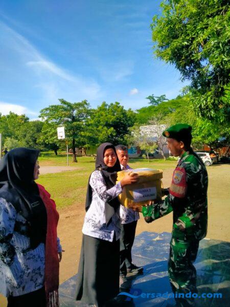Rote Ndao – Babinsa Desa Oelua, Sertu Jose Timo, bersama Kepala Desa Oelua, melaksanakan pembagian bantuan pangan berupa beras bagi masyarakat...
