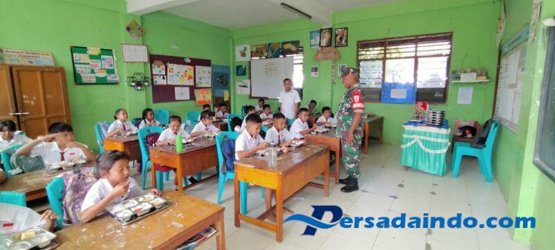 SUMBA BARAT – Babinsa Koramil 01/Loli Kodim 1613/Sumba Barat melaksanakan pemantauan kegiatan penyaluran makanan bergizi gratis kepada para siswa SD Katolik di Desa Kalembu Kuni, Kecamatan Kota Waikabubak, Kabupaten Sumba Barat, Senin (14/7/2025).
