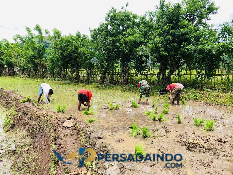 NTT – Sumba Timur. Babinsa Koramil 06/Karera Kodim 1601/Sumba Timur, Pratu Hezron Domu Wora, melaksanakan pendampingan kepada petani dalam kegiatan penanaman padi di Desa Nggongi, Kecamatan Karera, Kabupaten Sumba Timur, Jumat (09/01/2026).