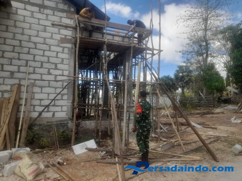 Dalam kegiatan tersebut, Babinsa turut serta membantu salah satu warga binaan, Bapak Jakob Foes, dalam proses pembangunan rumah. Kehadiran Babinsa di tengah masyarakat ini merupakan bentuk nyata kepedulian TNI terhadap kesulitan warga di wilayah binaannya.