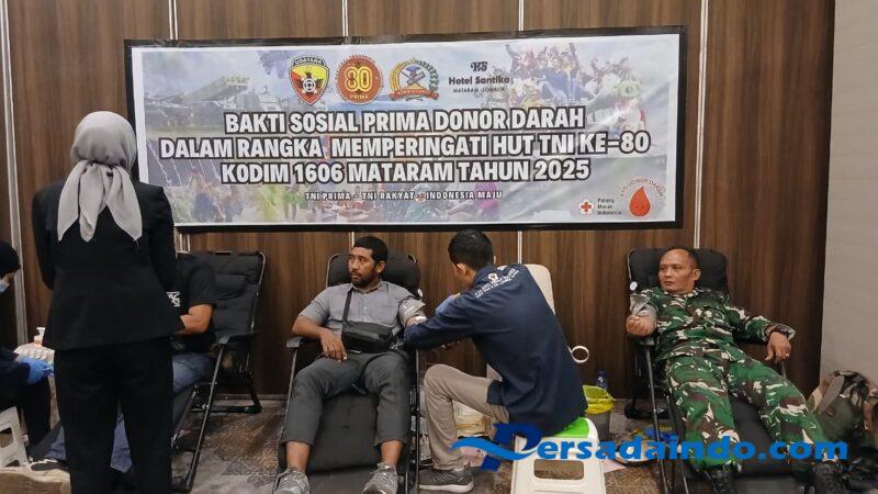 Mataram, NTB – Semangat kebersamaan dan kepedulian sosial tampak dalam rangkaian peringatan Hari Ulang Tahun ke-80 Tentara Nasional Indonesia (TNI) “TNI PRIMA – TNI RAKYAT – INDONESIA MAJU”. Komando Distrik Mikiter (Kodim) 1606/Mataram bersama Hotel Santika Mataram menggelar kegiatan Bakti Sosial Prima Donor Darah di Ballroom Santika 5-6, Jalan Pejanggik, Kecamatan Selaparang, Kota Mataram, Nusa Tenggara Barat, Kamis (25/9/2025).