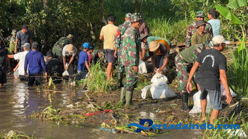 Gianyar – Blahbatuh, Rabu (17/9/2025) Sebagai bentuk kepedulian terhadap warga khususnya para petani, Danramil 1616-04/Blahbatuh Kapten Inf I Wayan Sudana bersama anggota Koramil dan Krama Subak Sema Desa Pering melaksanakan karya bakti memperbaiki saluran irigasi Sungai Gunung Sari Kangin, Subak Sema, Desa Pering, Kecamatan Blahbatuh, Kabupaten Gianyar. Saluran irigasi tersebut jebol akibat banjir yang terjadi pada 10 September 2025 lalu.