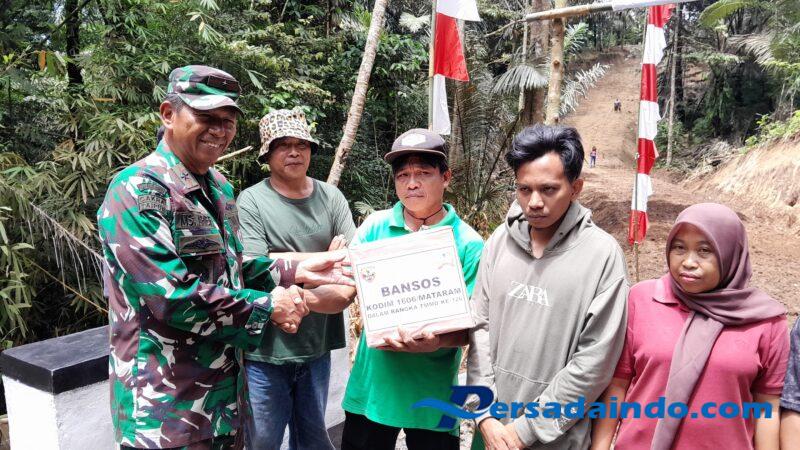 Acara peresmian ditandai dengan pemotongan pita dan pemecahan kendi di lokasi jembatan dan pompa hidram oleh Danrem 162/WB, dilanjutkan dengan penyerahan bantuan sosial (bansos) kepada warga, serta sesi foto bersama.