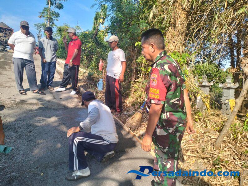 Sukasada, 5 Oktober 2025 — Babinsa Desa Panji Anom, Serma I Kadek Teges Suardana dari Koramil 1609-05/Sukasada, bersama Bhabinkamtibmas Aiptu Wayan Pasek Rum, melaksanakan kegiatan monitoring proyek betonisasi jalan lingkungan yang berlokasi di Dusun Lebahsiung, Desa Panji Anom, Kecamatan Sukasada, Kabupaten Buleleng, pada Minggu (5/10/2025) pukul 08.00 hingga 09.30 WITA.