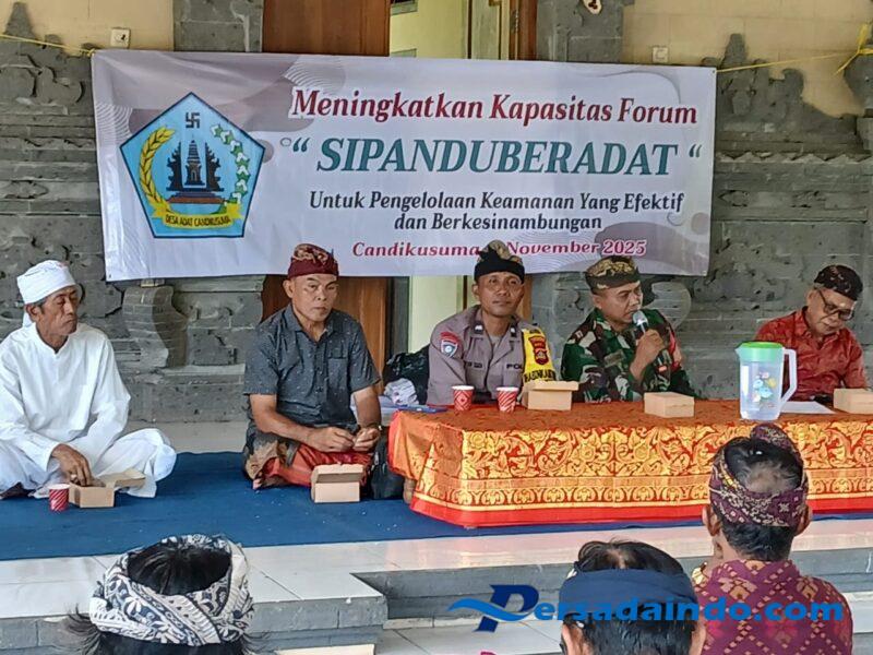 Kegiatan penting ini berfokus pada Peningkatan Kapasitas Forum Sipandu Beradat guna mencapai pengelolaan keamanan yang efektif dan berkesinambungan di lingkungan adat.Bertempat di Wantilan Pura Indrakusuma, Banjar Candikusuma, kehadiran Babinsa dan Bhabinkamtibmas disambut antusias oleh para pemangku kepentingan adat dan wilayah.