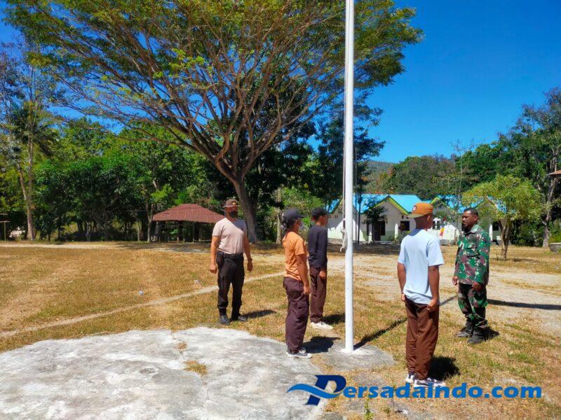 NTT-Kefamenanu, Selasa 12 Agustus 2025, Panas terik bukan halangan, lelah bukan alasan semangat mencetak generasi disiplin terus berkobar dalam dada setiap pelatih, Dalam rangka menyambut peringatan Hari Ulang Tahun ke-80 Kemerdekaan Republik Indonesia, Babinsa Koramil 1618-04/Biboki Selatan Sertu Ferdinand Bata bersama Bhabinkamtibmas Aipda Jefri melaksanakan pelatihan Pasukan Pengibar Bendera (PASKIBRA) di halaman Kantor Kecamatan Biboki Selatan, Kabupaten Timor Tengah Utara (TTU).