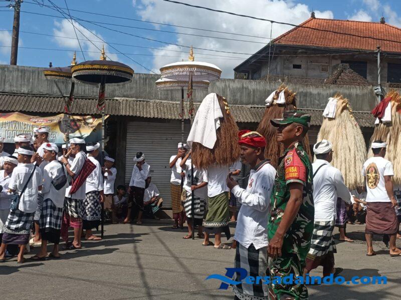 “kita bersinergi dengan Pacalang Adat Sala untuk mengamankan kegiatan Dewa Yadnya ngelawang ke Pura Dalem Adat Sala desa Abuan” ucap Babinsa.