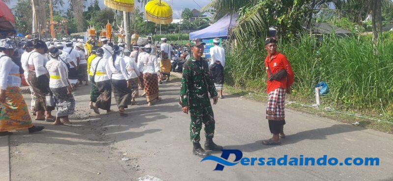 Sertu I Made Sukajaya menyampaikan bahwa kehadiran Babinsa dalam kegiatan ini merupakan wujud dukungan terhadap Karya Ngasti (Meligia Punggel), khususnya dalam membantu pengamanan dan pengaturan arus lalu lintas agar seluruh rangkaian upacara dapat berlangsung aman, tertib, dan lancar.