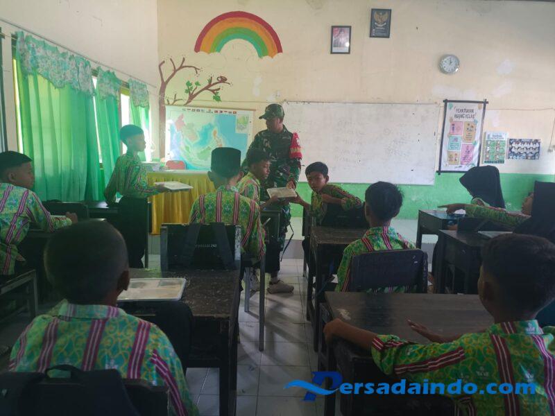 Sumbawa Barat, NTB – Dalam upaya mendukung program pemerintah dalam meningkatkan gizi anak-anak usia sekolah, Babinsa Desa Moteng, Serda Heriyanto dari Koramil 1628-01/Taliwang, melaksanakan kegiatan pendampingan makan bergizi di SD Moteng, Desa Moteng, Kecamatan Brang Rea, Kabupaten Sumbawa Barat, pada Kamis (17/07/2025) pukul 09.10 WITA.