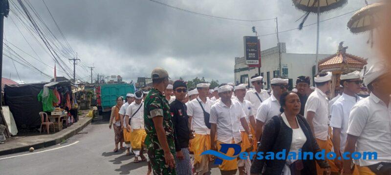 Bangli – Dalam rangkaian upacara Piodalan Purnama Sasih Kasa, Babinsa Desa Batur bersama Bhabinkamtibmas serta Pecalang Desa Adat Batur melaksanakan pengamanan prosesi Ida Batara-Betari Pura Ulun Danu Batur yang melakukan perjalanan suci (lunga) menuju Pura Jati, Sabtu (5/7/25)