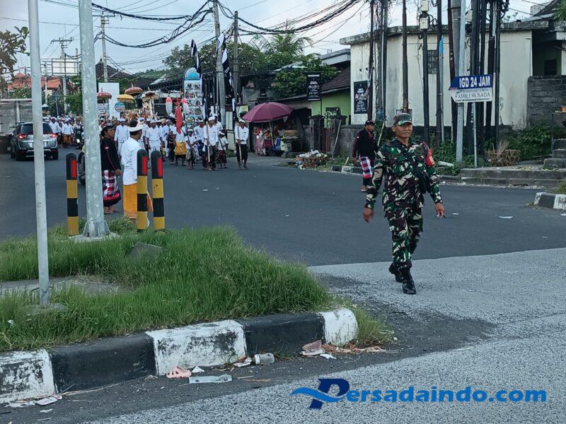 Dalam kegiatan tersebut, Babinsa bersama aparat terkait berupaya mengatur arus lalu lintas agar tetap tertib dan lancar, mengingat banyaknya warga dan pemedek yang berjalan kaki secara beriringan menuju pantai sebagai bagian dari prosesi upacara. Sinergi antara TNI, Polri, dan Pecalang ini menjadi bentuk nyata kerja sama dalam memberikan rasa aman dan nyaman kepada masyarakat yang melaksanakan kegiatan keagamaan di ruang publik.