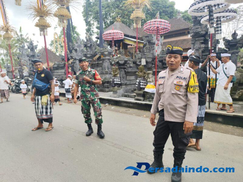 Gianyar – Tegallalang, Sabtu (30/8/2025) Dalam rangka mendukung kelancaran kegiatan adat di wilayah binaan, Babinsa Desa Taro Koramil 1616-06/Tegallalang Sertu I Made Rai Wibisana bersama Bhabinkamtibmas Desa Taro Bripka I Made Wartu serta Pecalang Banjar Tatag melaksanakan pengamanan sekaligus pengaturan arus lalu lintas pada kegiatan Piodalan di Pura Dalem Banjar Tatag, Desa Taro, Kecamatan Tegallalang, Kabupaten Gianyar.