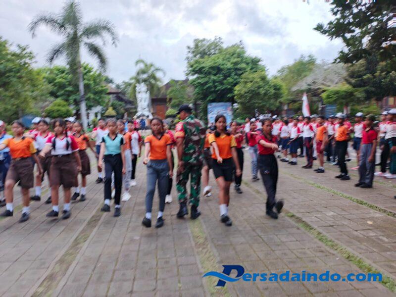 • Siswa-siswi SMPN 5 Amlapura mendapat pelatihan PBB dari Babinsa Padang Kerta