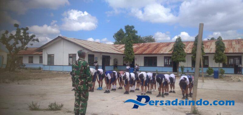 NTT – Sumba Timur, Babinsa Koramil 01/Lewa, Kodim 1601/Sumba Timur Serka Andreas Tapenu, melaksanakan kegiatan latihan Peraturan Baris Berbaris (PBB) bagi siswa-siswi SMP Ketrampilan Lewa Kecamatan Lewa Paku, Kabupaten Sumba Timur,pada Rabu (17/09/2025).