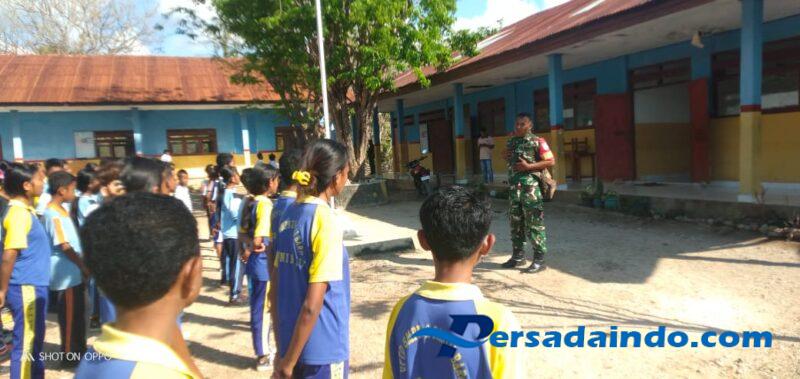 Rote Ndao – Dalam rangka menjalankan tugas pembinaan teritorial, Babinsa Koramil 1627-03/Pantai Baru, Serda Roni Riberu, melaksanakan kegiatan monitoring wilayah binaan sekaligus melatih murid-murid SMPN 2 Desa Sonimanu, Kecamatan Pantai Baru, Kabupaten Rote Ndao, pada Jumat (19/9/2025) pukul 08.00 WITA.
