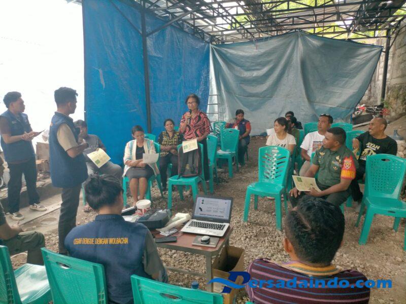NTT-KUPANG, – Babinsa Kelurahan Merdeka Koramil 1604-01/Kupang, Sertu Soleman Missa menghadiri kegiatan sosialisasi tentang Demam Berdarah Dengue (DBD) melalui Program Nyamuk Ber-Wolbachia tingkat RW yang dilaksanakan di RT 001/RW 001 Kelurahan Merdeka, Kecamatan Kota Lama, Kota Kupang. Kegiatan ini bertujuan untuk memberikan pemahaman kepada masyarakat mengenai manfaat dan mekanisme kerja Nyamuk Ber-Wolbachia dalam menekan penyebaran penyakit DBD di lingkungan pemukiman. Kamis (30/10/2025).