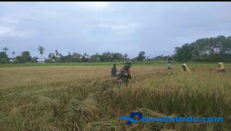 “Ini sudah merupakan tugas kami sebagai aparatur kewilayahan membantu para petani dalam hal pertanian, seperti kegiatan panen padi yang sedang saya kerjakan merupakan wujud kemanunggalan TNI- Rakyat,” ujarnya,