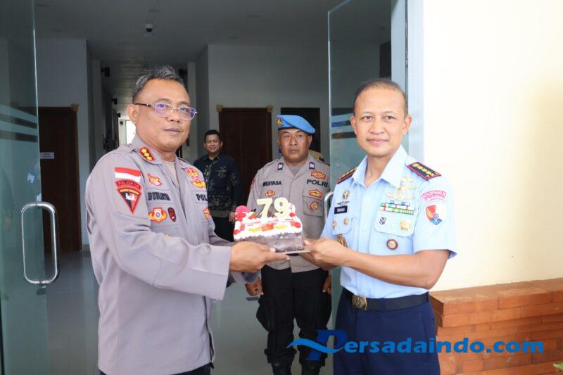 • Surprice… Kapolres Bandara Ngurah Rai Terima Kue Ulang Tahun Bhayangkara dari Danlanud