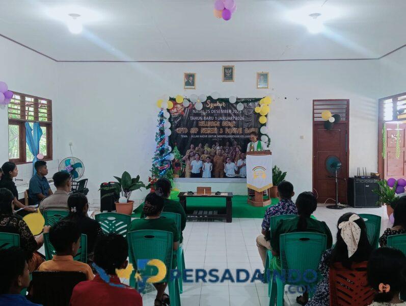 Rote Ndao — Dalam rangka mempererat kebersamaan serta meningkatkan nilai-nilai keimanan, keluarga besar UPTD SMP Negeri 3 Pantai Baru menggelar kegiatan Syukur Natal 25 Desember 2025 dan menyongsong Tahun Baru 1 Januari 2026 dengan tema “Allah Hadir Untuk Menyelamatkan Keluarga”.