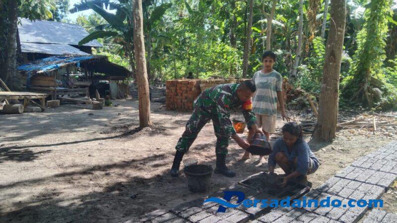 NTT_ALOR-, Babinsa Koramil 02/Pantar Kodim 1622/Alor Praka Kris Serang bersama warga binaan bahu membahu melaksanakan kegiatan pemantauan wilayah sekaligus membantu masyarakat yang sedang melaksanakan cetak batu bata di Desa Bandar, Kecamatan Pantar, Kabupaten Alor, Rabu,(25/06/2025).