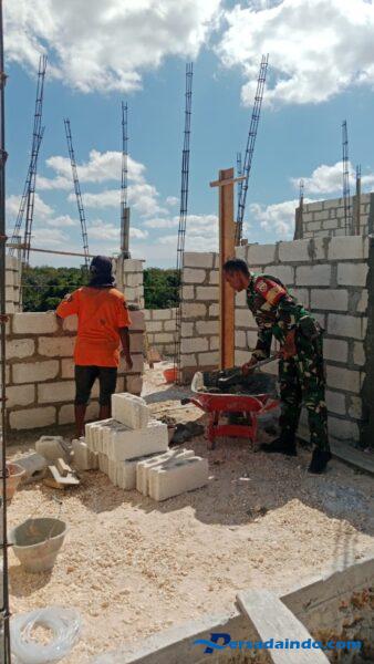 Rote Ndao – Babinsa Koramil 01/Ba’a Kodim 1627/Rote Ndao Sertu Nelson Sine. Guna terciptanya sinergitas TNI bersama rakyat, Babinsa Koramil melaksanakan karya bakti membantu membangun rumah, untuk rumah milik warga binaannya, di Desa Suelain Kecamatan Lobalain Kabupaten Rote Ndao. Rabu , (20/08/2025).
