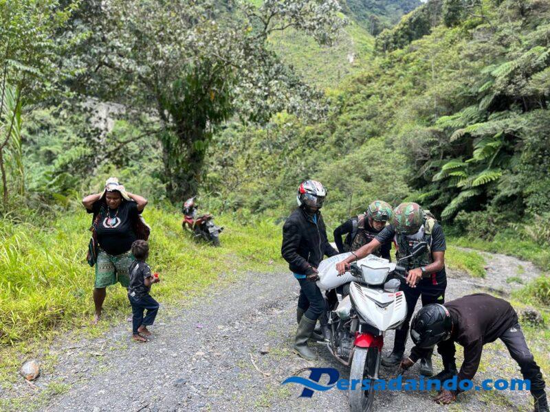Peristiwa itu terjadi saat seorang warga, Bapak Onim Talenggeng, tengah membawa beras untuk keluarganya. Jalan yang rusak dan licin membuatnya terjatuh dan mengalami luka. Tanpa menunggu lama, prajurit Satgas Yonif 743/PSY yang sedang berjaga segera bergerak cepat memberikan pertolongan.