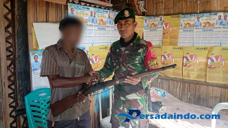Bakuin – Personel Satgas Pamtas RI-RDTL Sektor Barat Yonarhanud 2 Kostrad Pos Oepoli Pantai menerima 4 pucuk senjata api laras panjang jenis Springfield sebagai wujud kepercayaan masyarakat perbatasan kepada Satgas Pamtas di Desa Bakuin, Kec. Amfoang Utara, Kab. Kupang. Sabtu (22/11)