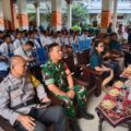 Gianyar – Sebagai bentuk dukungan terhadap dunia pendidikan, Babinsa Kelurahan Gianyar Koramil 1616-01/Gianyar Sertu I Made Merta Yasa bersama...