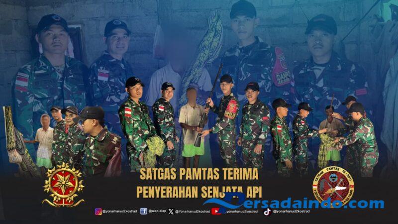 • Terima Senjata Api, Bukti Kepercayaan Warga Terhadap Satgas Pamtas Yonarhanud 2 Kostrad