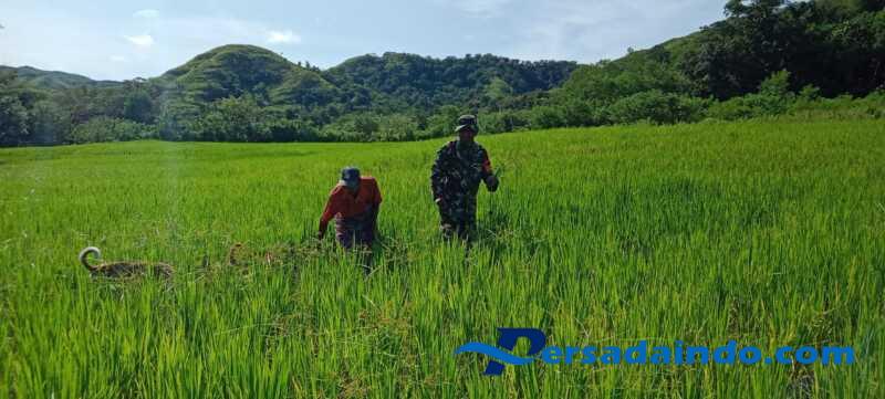 • Terjun Langsung ke Sawah, Babinsa Koramil 04/Tabundung Bantu Petani Bersihkan Gulma Di Sawah