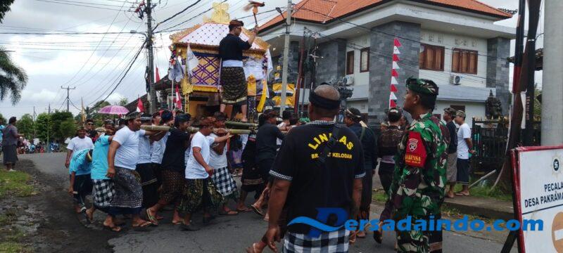 Aparat gabungan yang terdiri dari Babinsa, Bhabinkamtibmas dan pecalang tampak begitu kompak dan solid memastikan seluruh rangkaian ngaben massal tersebut berjalan aman dan lancar.