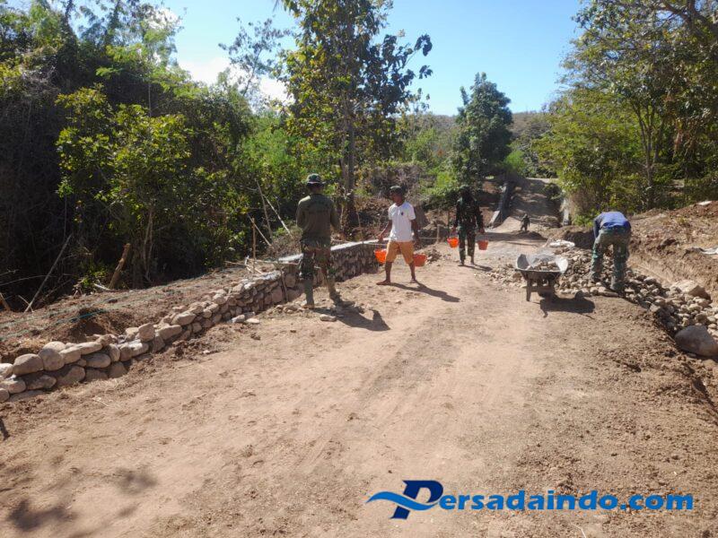 Oleh karena itu Ia menegaskan anggota TNI dan masyarakat yang bekerja dilapangan terus gencar melaksanakan pengerjaan pembangunan jalan ini yang merupakan salah satu dari sasaran fisik utama dengan harapan bisa selesai tepat waktu.