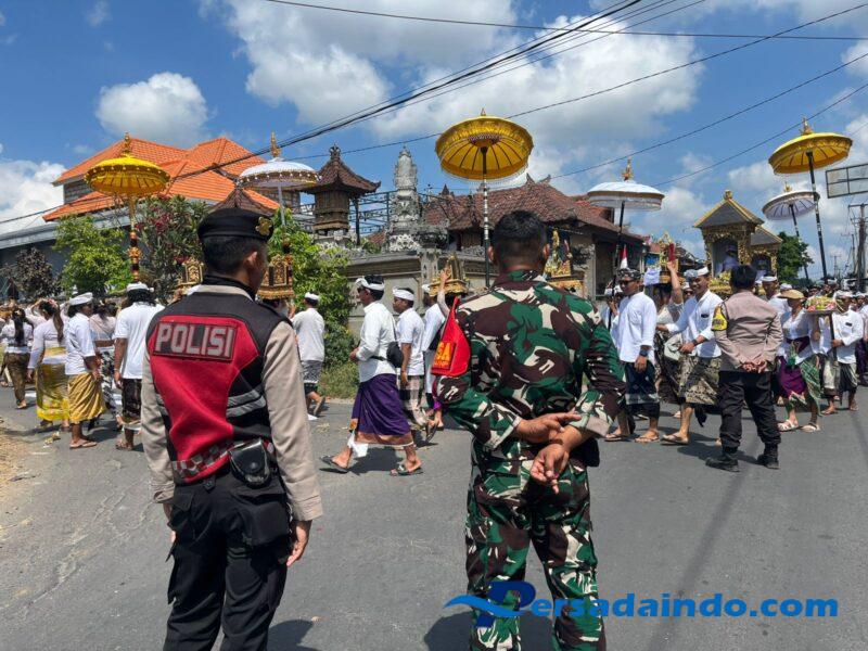 Dalam rangka memastikan rangkaian upacara ini berjalan dengan aman, tertib dan lancar, pihaknya bersama Bhabinkamtibmas dan pecalang melaksanakan pengamanan dan pengawalan ketat,”ujarnya.