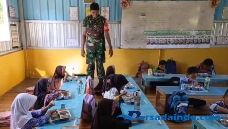 Sumbawa Barat, NTB – Dalam rangka mendukung program pemerintah di bidang kesehatan dan gizi anak sekolah, Babinsa Desa Tepas, Serda Rusdiansyah dari Koramil 1628-01/Taliwang melaksanakan pendampingan kegiatan Makan Bergizi Gratis (MBG) yang digelar di SDN 2 Tepas, Kecamatan Brang Rea, Kabupaten Sumbawa Barat, Kamis (16/10/2025).