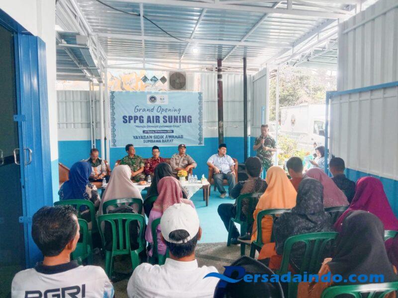 Sumbawa Barat – NTB, Upaya peningkatan pelayanan pemenuhan gizi masyarakat kembali diperkuat dengan diresmikannya Dapur Satuan Pelayanan Pemenuhan Gizi (SPPG) Yayasan yang berlokasi di RT 02 Dusun Air Suning, Kecamatan Seteluk, Sabtu (29/11/2025). Kegiatan peresmian yang dimulai pukul 09.00 WITA tersebut dihadiri berbagai unsur pemerintah daerah, TNI, Polri, tokoh masyarakat, serta stakeholder terkait.