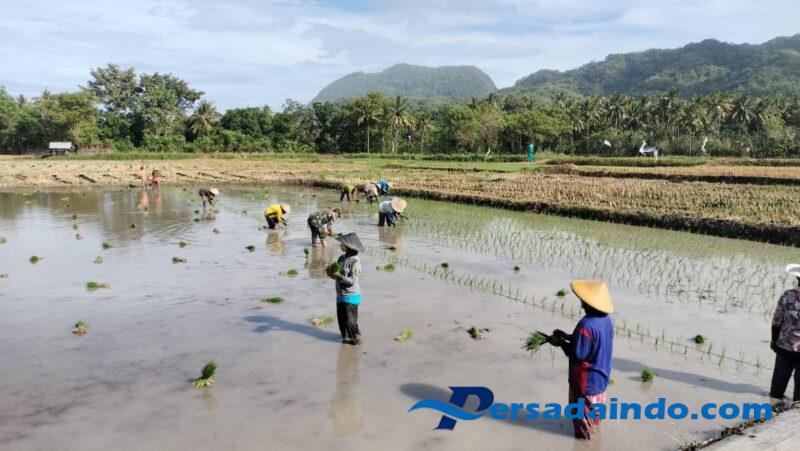 Dalam kesempatan itu Sertu Lalu Edi karky menyampaikan, Kegiatan pendampingan kepada kelompok tani merupakan kegiatan rutin yang kami laksanakan, untuk membantu menanam padi bersama kelompok tani.