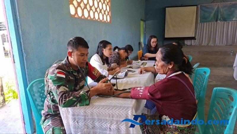 Eban – Makosatgas Pamtas RI-RDTL Sektor Barat bersama dengan Yayasan Tangan Pengharapan melaksanakan pelayanan kesehatan dan konsultasi kesehatan gratis untuk masyarakat sekitar di Desa Eban, Kec. Miomaffo Barat, Kab. TTU. Sabtu (04/10)