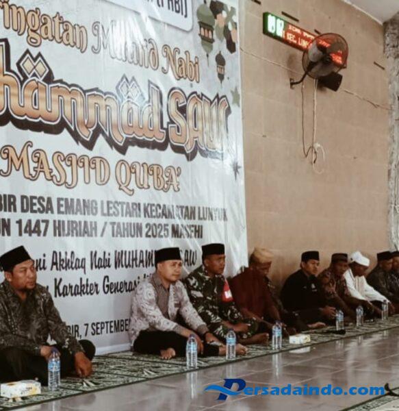 NTB – Sumbawa, Minggu (07/09/2025) – Dalam rangka memperingati Maulid Nabi Besar Muhammad SAW 1447 H/2025 M, Babinsa Desa Emang Lestari, Koramil 1607-07/Lunyuk, Serda Nurhadi menghadiri kegiatan keagamaan yang digelar di Masjid Quba, Dusun Kalabir, Desa Emang Lestari, Kecamatan Lunyuk, Kabupaten Sumbawa.