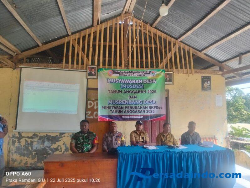 Detuwulu, Pemerintah Desa Detuwulu, Kecamatan Maurole, Kabupaten Ende, menggelar Musyawarah Desa (Musdes) untuk penyusunan Rencana Kerja Pembangunan Desa (RKPDes) Tahun Anggaran 2026. Kegiatan ini berlangsung pada Selasa (22/07/2025) pukul 09.30 WITA bertempat di Aula Kantor Desa Detuwulu.