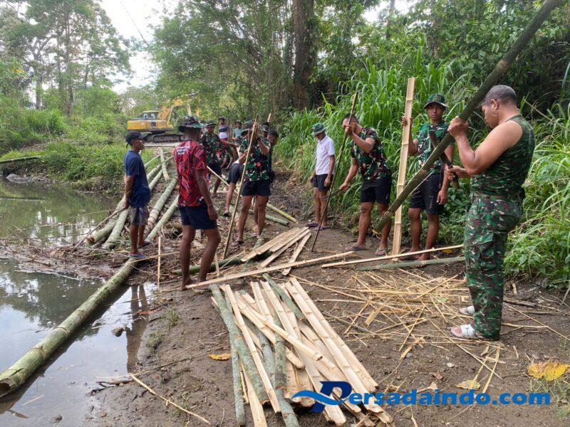 Hingga hari ini, progres pekerjaan fisik telah mencapai 21%. Satgas TMMD melaksanakan kegiatan pemotongan bambu untuk kebutuhan profil bangunan bendungan. Kegiatan ini dilakukan secara bergotong royong dengan semangat kebersamaan antara prajurit TNI