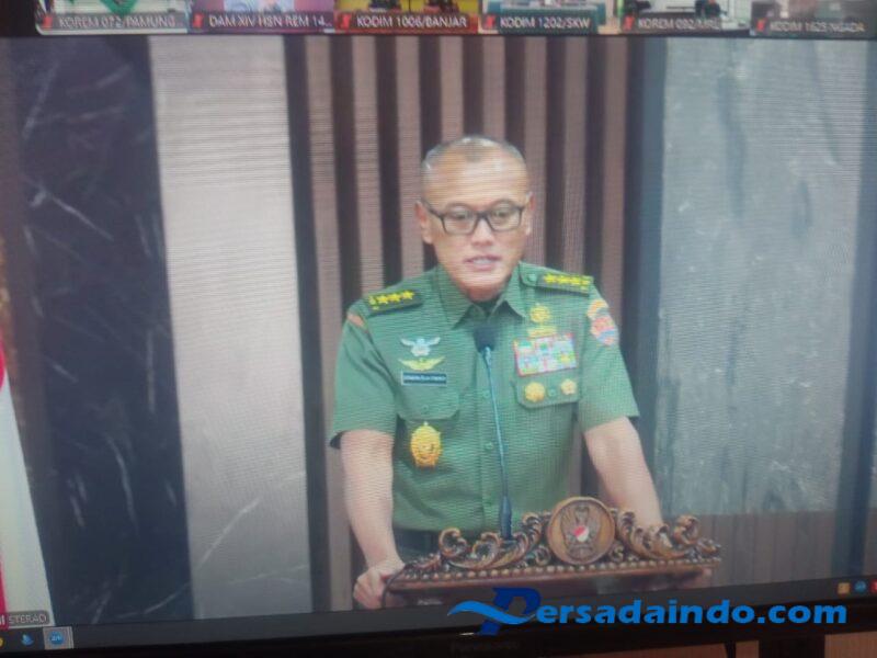 Rapat evaluasi ini diikuti oleh jajaran Kodim 1628/KSB, di antaranya PJS Pasi Ter Kapten Inf Bambang serta Batih Bakti Staf Ter Serka Donny Ari Setiawan, bersama para peserta dari seluruh Indonesia melalui jaringan vicon.